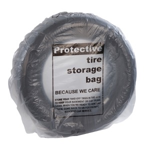Standard size for passenger tires. Multiuse, clear polyethylene bags. Roll of 100.