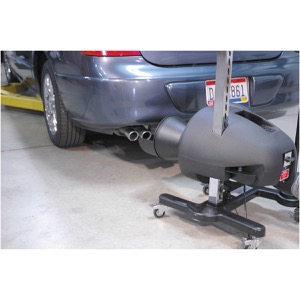 Removes toxic exhaust fumes from repair facilities. High-output suction fan captures fumes and discharges them up to 30' away. Height position is controlled by a quick-release spring-loaded cam lock. 3/4 HP fan produces 330 cfm air flow using110v current. Rolls easily to position behind vehicles.