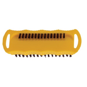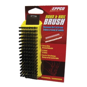 Two sided brush serves dual functions. Cleans dirt, grease, oil from hands, under fingernails. Comfortable ergonomic grip. Brush is firm enough to scrub off the toughest grim but not so firm as to damage skin. Smaller bristles on the other side are ideal for getting under fingernails. Features a convenient hang tab to keep it handy.
