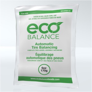EcoBalance beads work by the beads being distributed in the tire as it begins to roll, through centrifugal force. As the centrifugal force increases, the heavy spot pulls up and down on the suspension, making the beads move in the opposite direction of the downward and upward motion, through inertia. The beads continue to migrate until the complete wheel assembly is balanced.