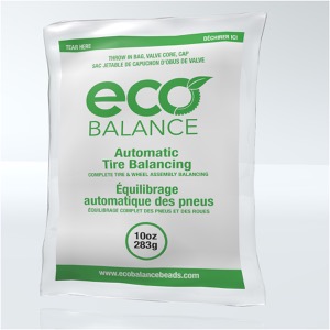 EcoBalance beads work by the beads being distributed in the tire as it begins to roll, through centrifugal force. As the centrifugal force increases, the heavy spot pulls up and down on the suspension, making the beads move in the opposite direction of the downward and upward motion, through inertia. The beads continue to migrate until the complete wheel assembly is balanced.