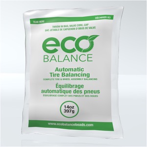 EcoBalance beads work by the beads being distributed in the tire as it begins to roll, through centrifugal force. As the centrifugal force increases, the heavy spot pulls up and down on the suspension, making the beads move in the opposite direction of the downward and upward motion, through inertia. The beads continue to migrate until the complete wheel assembly is balanced.