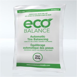 EcoBalance beads work by the beads being distributed in the tire as it begins to roll, through centrifugal force. As the centrifugal force increases, the heavy spot pulls up and down on the suspension, making the beads move in the opposite direction of the downward and upward motion, through inertia. The beads continue to migrate until the complete wheel assembly is balanced.
